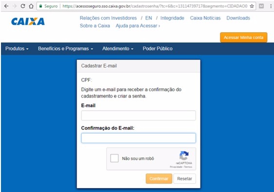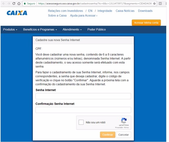 Após clicar em "cadastrar/esqueci senha", aparecerá uma tela igual a esta da figura abaixo.