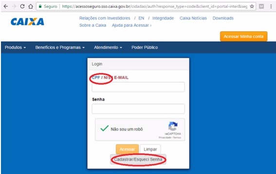 3º Clicar em "cadastrar/esqueci senha"