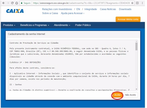 4º Clique em "aceito".