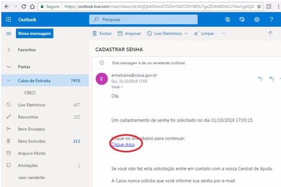 7º Acesse o seu e-mail e clique no link enviado.